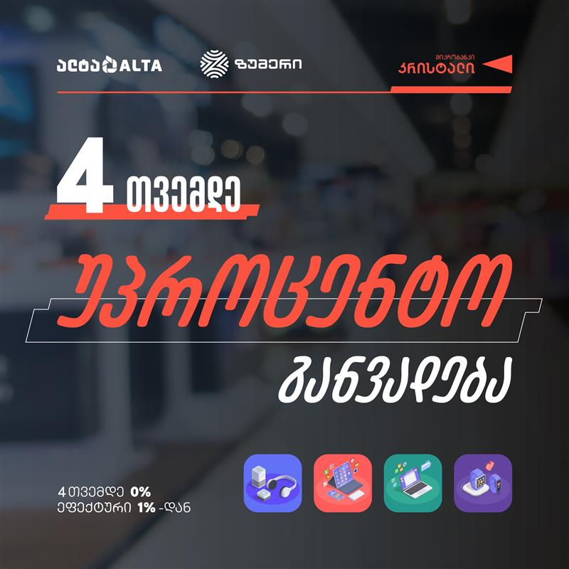 შეიძინე სასურველი ნივთი და მიიღეთ 4 თვემდე 0%-იანი განვადება ნებისმიერ ნივთზე!